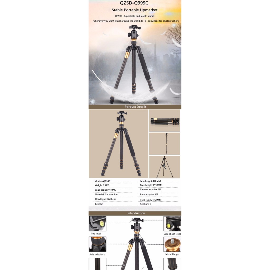 Giới thiệu CHÂN MÁY ẢNH TRIPOD/ MONOPOD BEIKE Q-999C