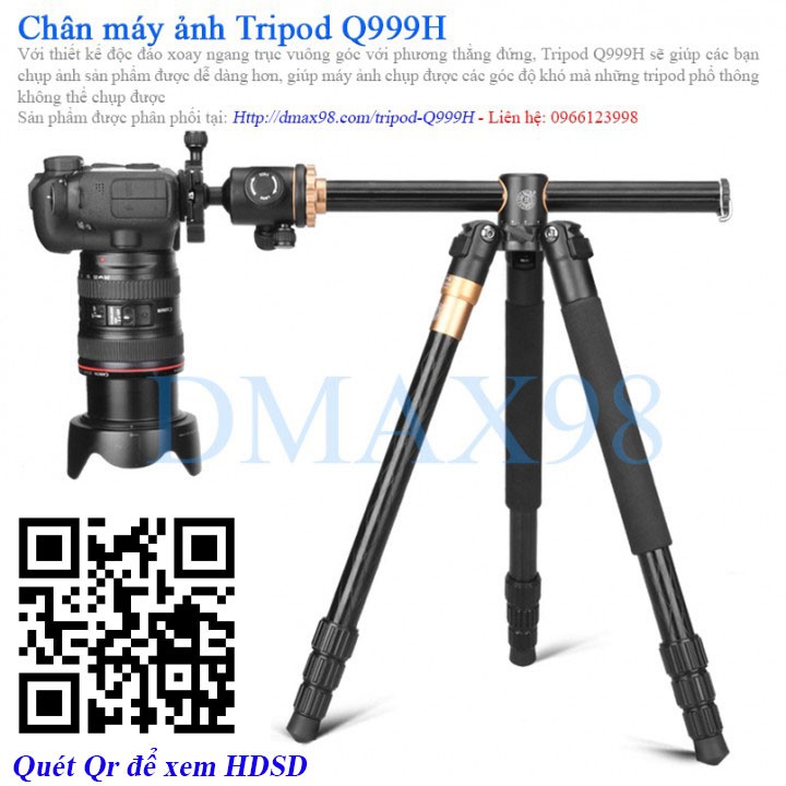 Chân máy ảnh Tripod Q999H bản trục đứng vuông góc