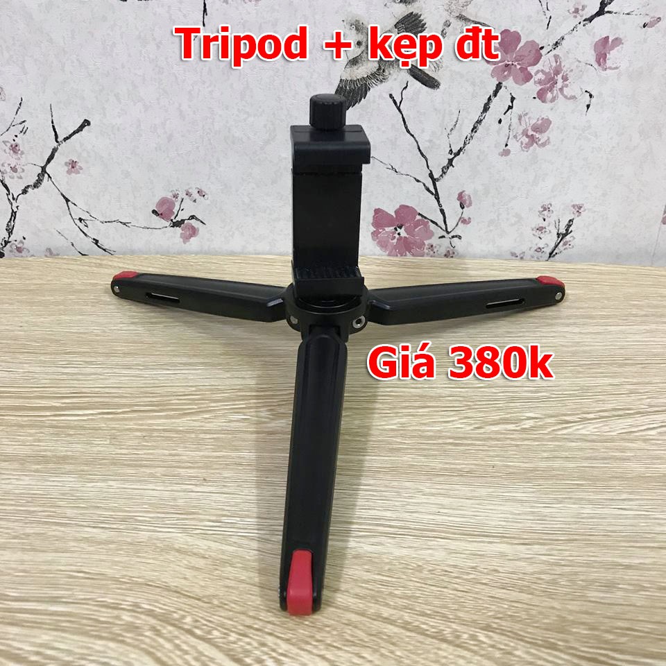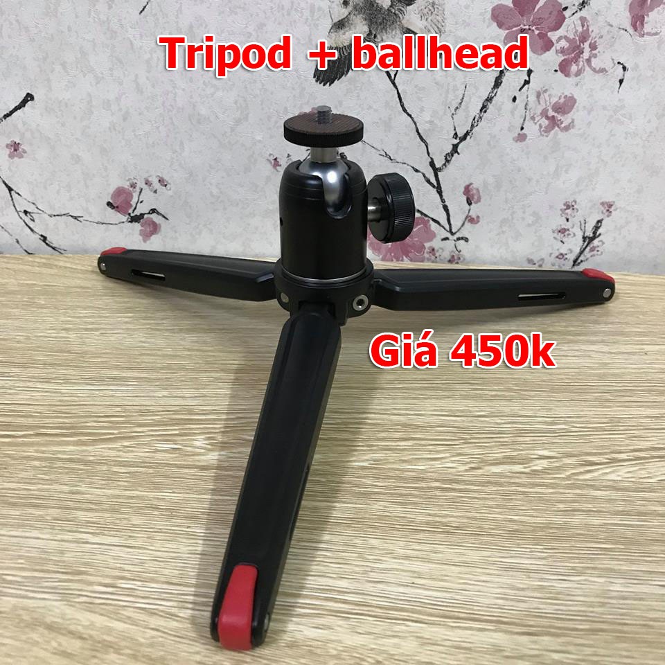 Chân có thể lắp thêm ballhead và kẹp điện thoại,....
