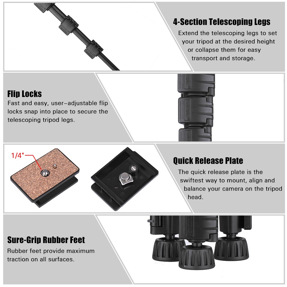 + Chân sử dụng củ dầu và tay cầm dài giúp cho việc quay video dễ dàng. video sẽ mượt và không bị giật khi lia máy.