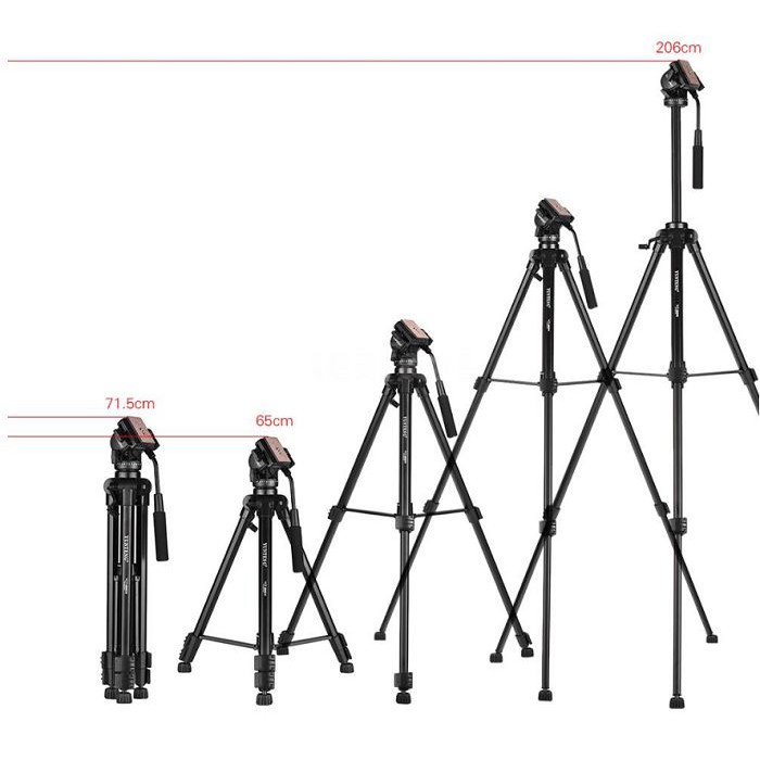 Chân máy ảnh Yunteng VCT- 999RM cao 2.06m được làm bằng hợp kim nhôm hàng không 6063T độ bền cao và nhựa ABS PA-757, chắc chắn và bền, có khả năng chịu tải lên đến 5kg. Với ngàm vít 1/4 “tiêu chuẩn, phù hợp với hầu hết các máy ảnh DSLR / ILDC, DV, máy quay phim hạng nhẹ. VCT- 999RM có thể điều chỉnh chiều cao chân máy từ 65 cm đến 206 cm một cách tự do, chiều cao khi gấp gọn chỉ 71.5cm.THÔNG SỐ KỸ THUẬT: