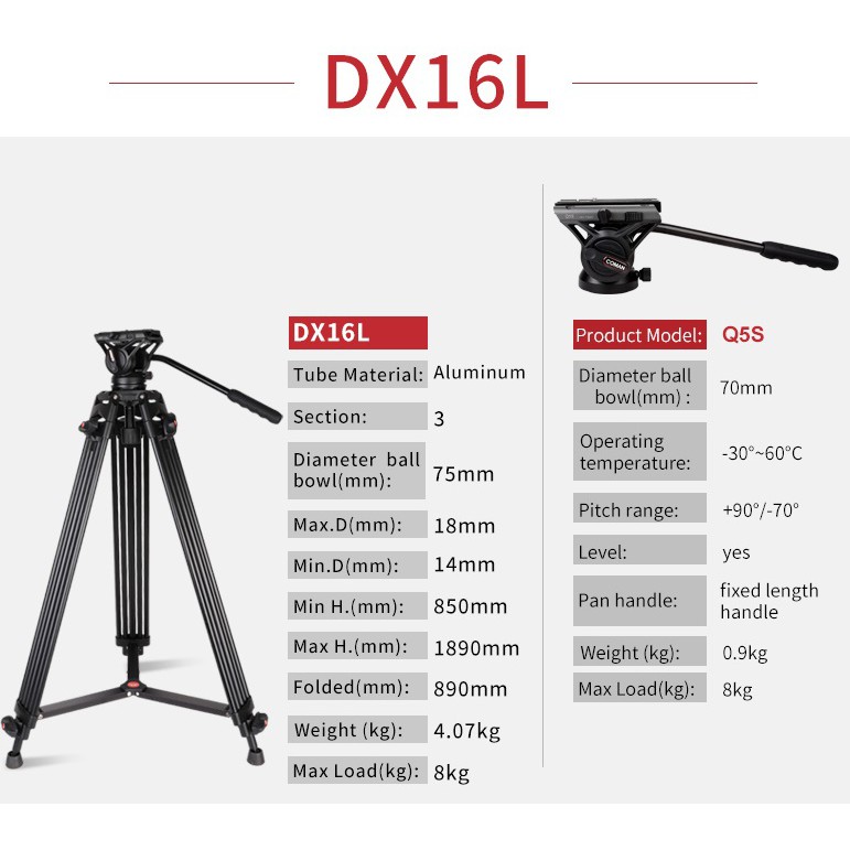 Giới thiệu Chân máy quay Coman DX16LQ5S