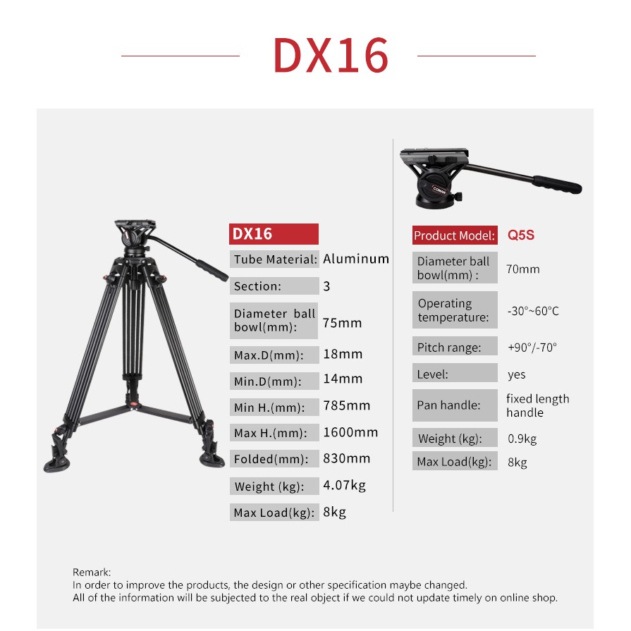Giới thiệu Chân máy quay Coman DX16Q5S Pro