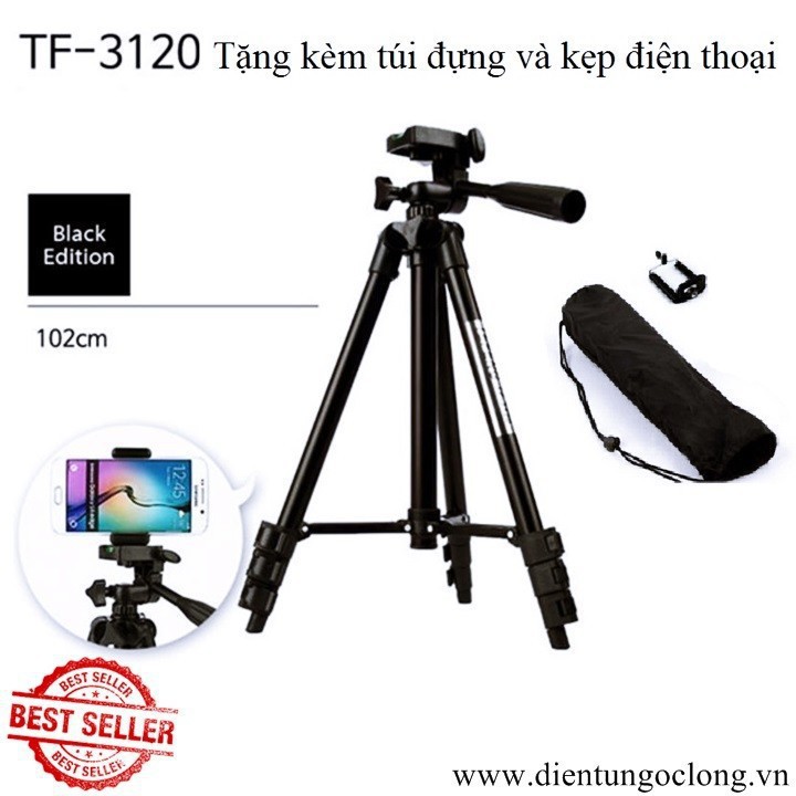- Tripod Hợp Kim TF-3120 Cho Điện Thoại hỗ trợ cho máy ảnh compact, camera hành trình hoặc điện thoại trong việc quay phim, chụp ảnh, có thể sử dụng thuận tiện cả trong nhà và ngoài trời