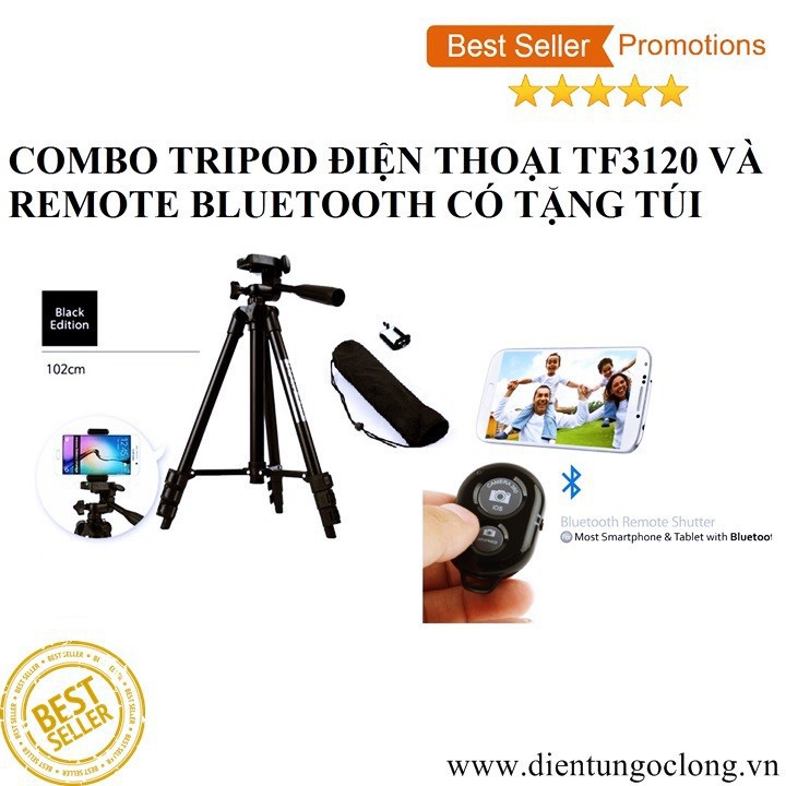 Tripod Điện Thoại TF3120 Và Remote Bluetooth Tặng Túi- Model: TF-3120