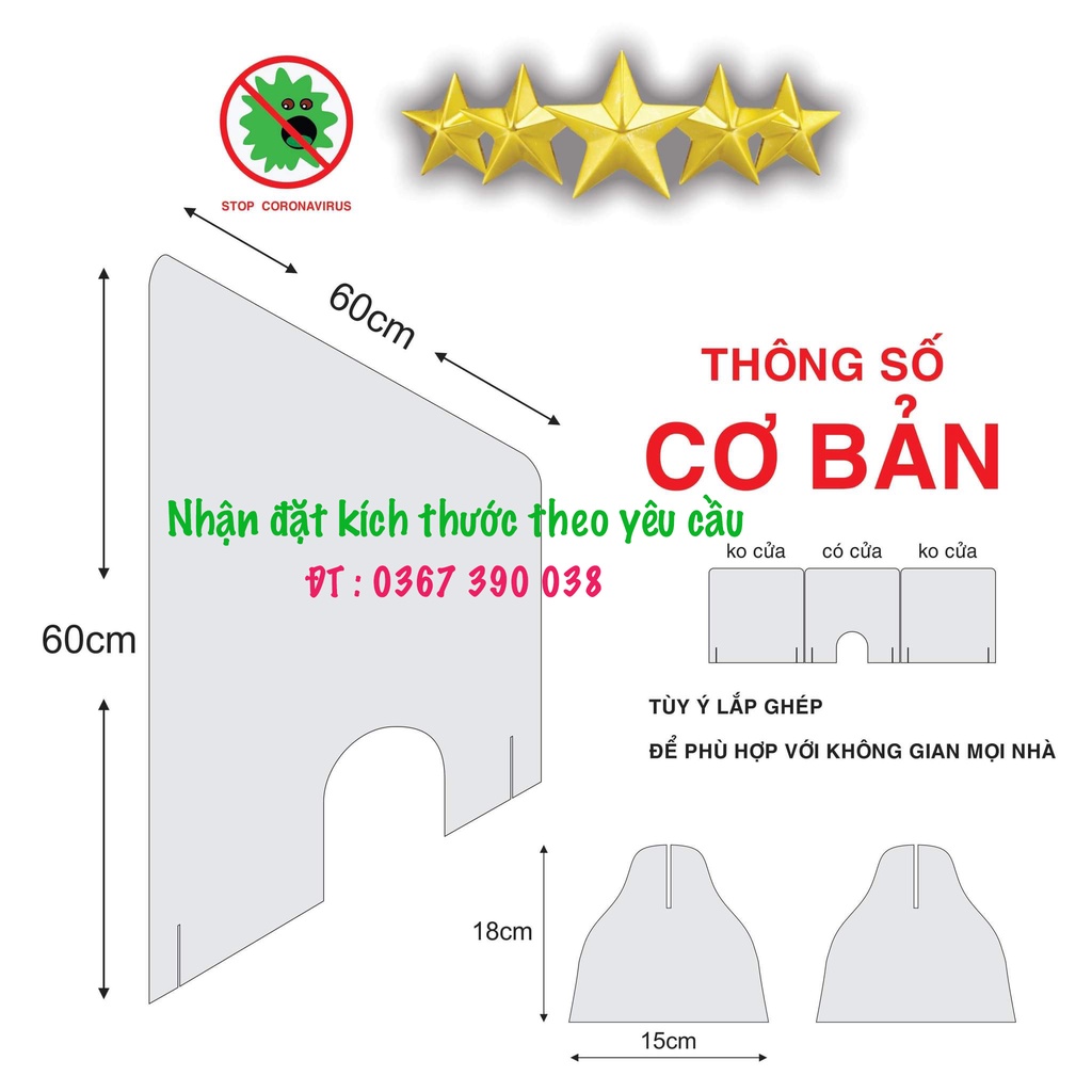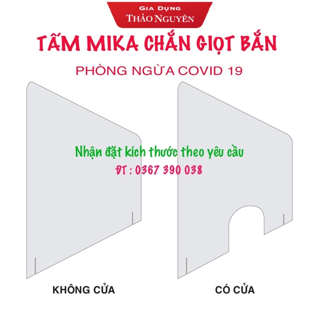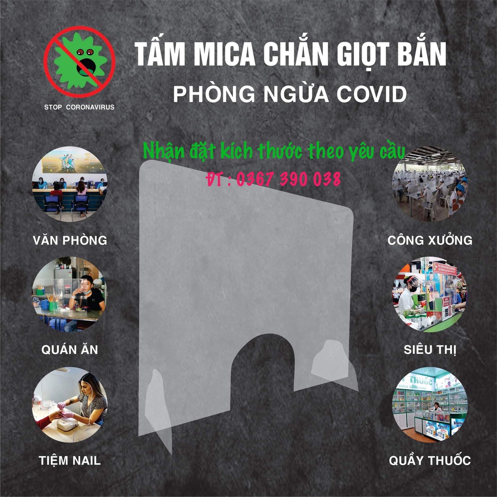 - Tấm chắn mica để bàn chống giọt bắn- Tác dụng: Ngăn nước bọt, chặn bắn tia bọt, vi khuẩn khi giao tiếp hoặc đứng gần nhau, góp phần phòng chống dịch bệnh