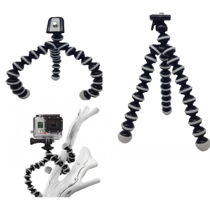 Chân địa hình mini đen trắng loại bé- Được thiết kế đặc biệt để có thể gắn vào hầu hết các địa hình khác nhau, từ mỏm đá, thân cây, dây thép v.v…, chân máy này luôn đem lại sự ổn định tối đa cho thân máy. Nếu là nhiếp ảnh gia yêu thiên nhiên và có máu phiêu lưu thì bạn nên tậu ngay cho mình một chiếc
