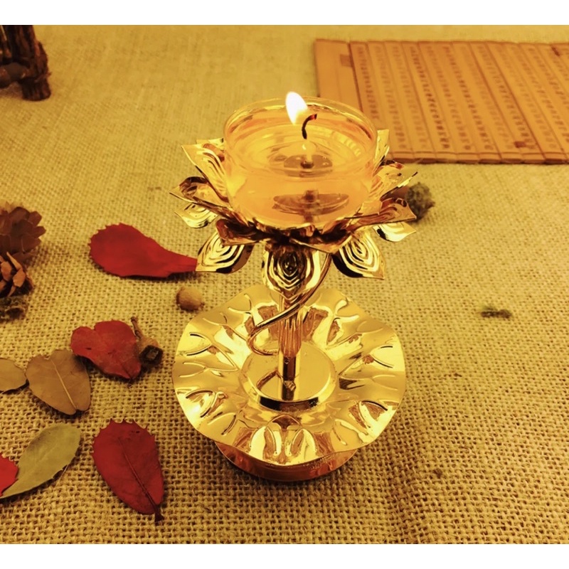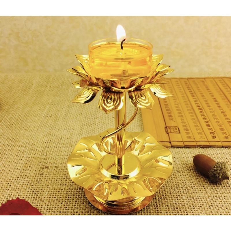 -Chân đế nến bằng hợp kim kiểu hoa sen lắp ráp đèn dầu điện tử Đức Phật tín đồ Đạo Phật bằng đồng Bơ Tây Tạng cho đèn hoa sen nến thủ công