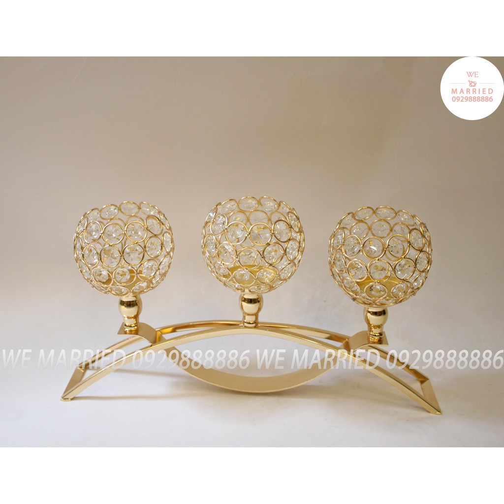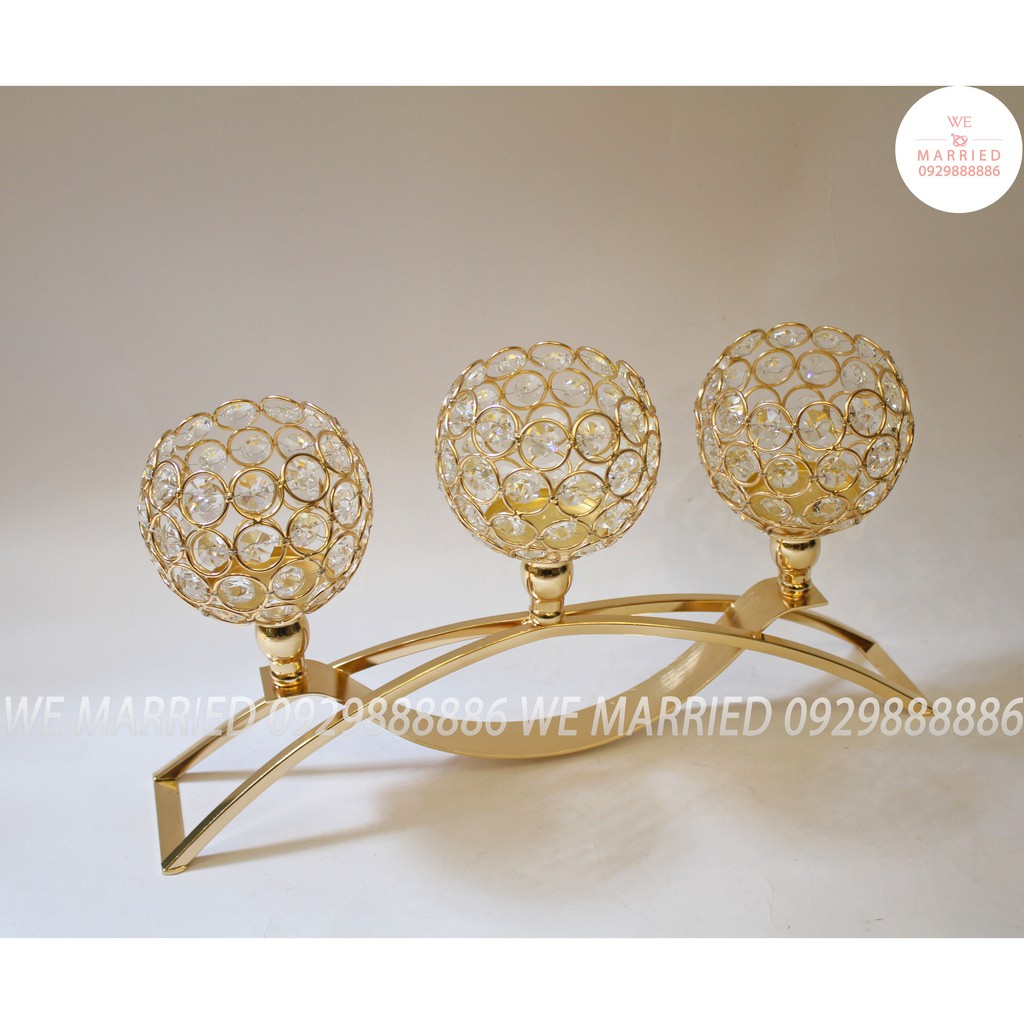 Chân nến 3 đầu - CN150Chất liệu: Khung kim loại mạ, đá pha lê