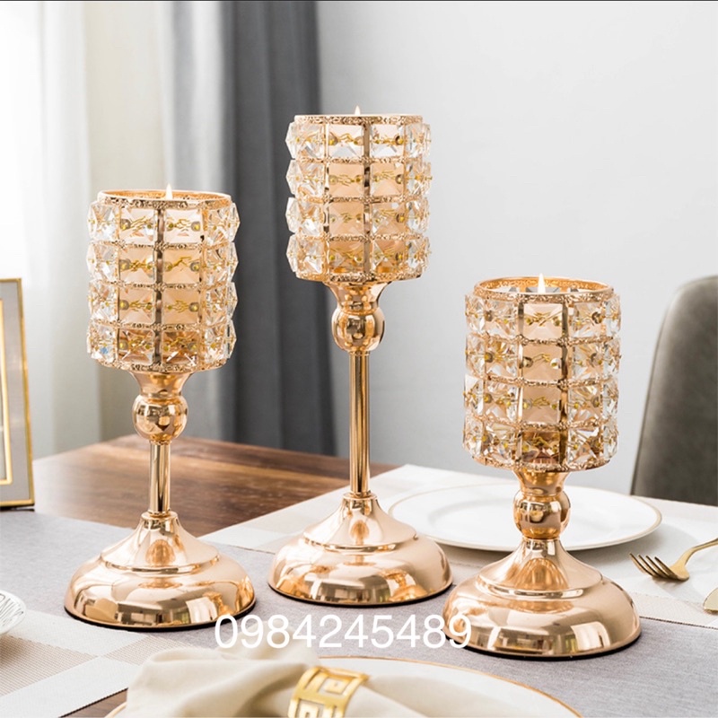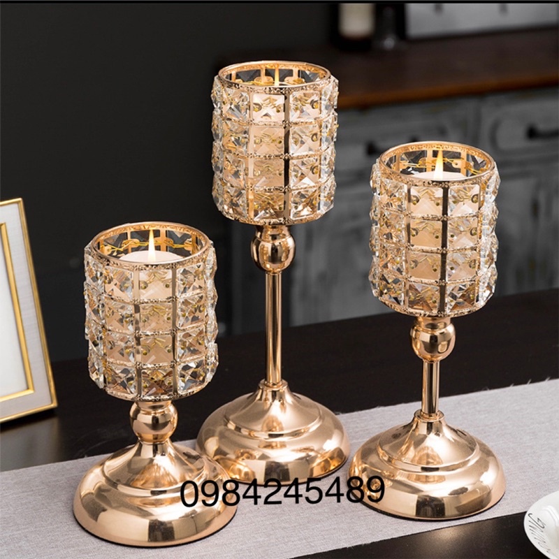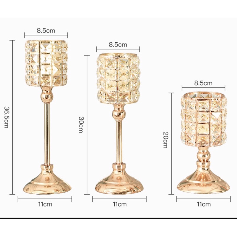 ❤Chân Nến Bộ 3 Pha Lê TrònChất lượng: kim loại mạ, trụ tròn có đính đá pha lê.