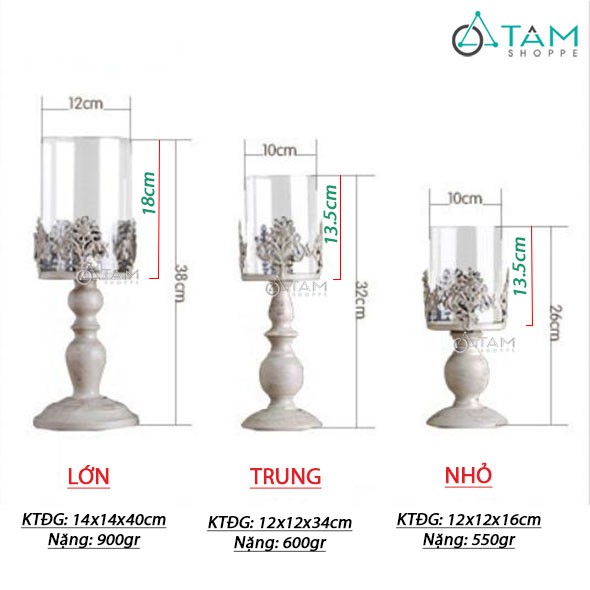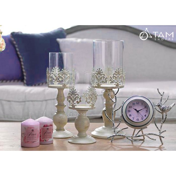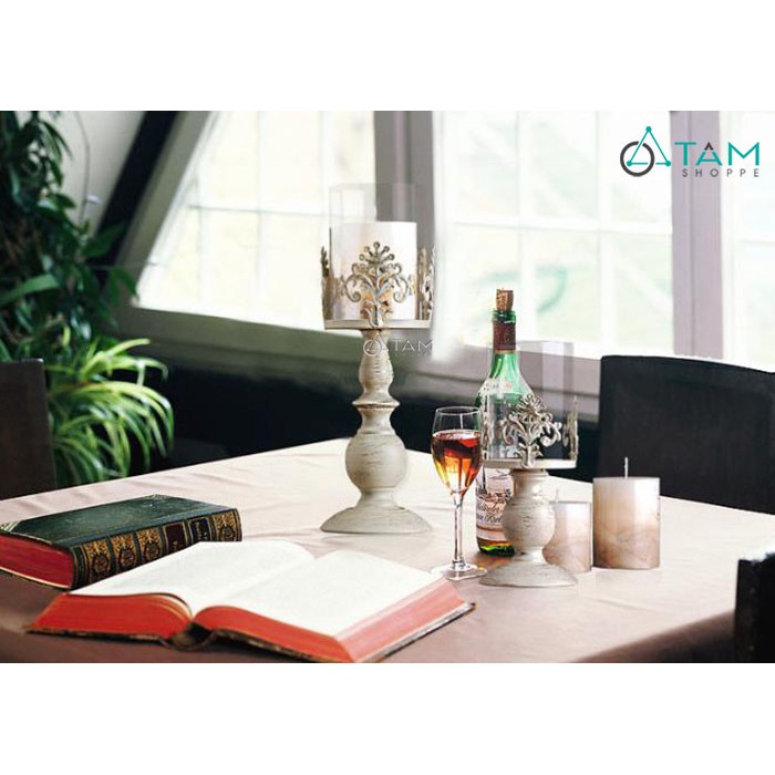 Nhà cửa & Đời sống > Trang trí nhà cửa > Nến & đồ đựng nến || Chân nến để bàn đế trụ lõi kính cổ điển Châu Âu H-CHN-18Còn hàng