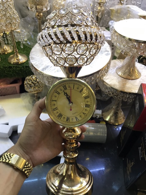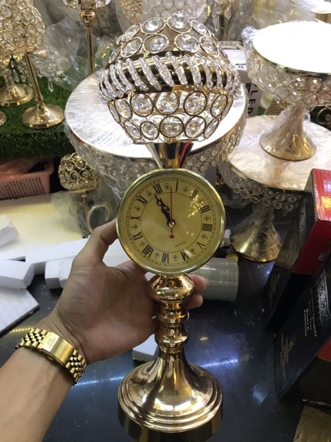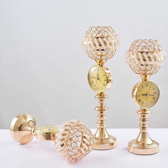 Kính chào các quý khách sang trọng ! Shop mới về bộ chân nến trang trí đính đá gắn đ ồng hồ ( đ ồng hồ thật nha ) .Bộ chân nến trang trí gắn đ ồng hồ có 3 kích thước từ thấp đến cao : ~30cm , ~35cm và ~40cm .
