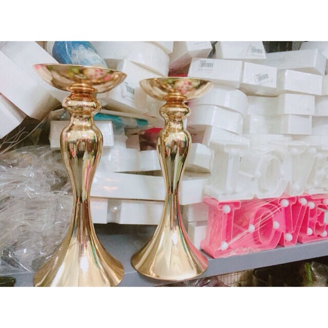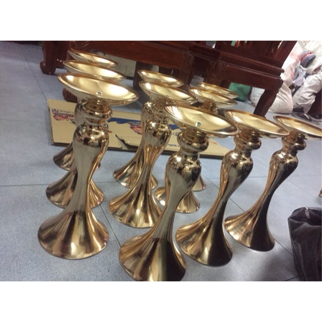 Sản phẩm được shop dùng đi trang trí rất nhiều rồi nha . Chân nến đuôi cá được làm bằng hợp kim , mạ vàng công nghệ pvd bền mầu , hàng luôn có sẵn nhé .