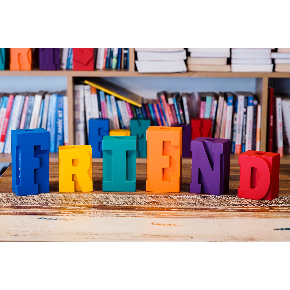 Chân nến gỗ các chữ "HEART"/ "FRIEND"/ "LOVE"/ "FAMILY"
