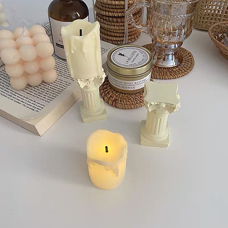 Chân nến La Mã thạch cao, nến điện tử trang trí, đạo cụ chụp ảnh, đèn ngủ nến retro