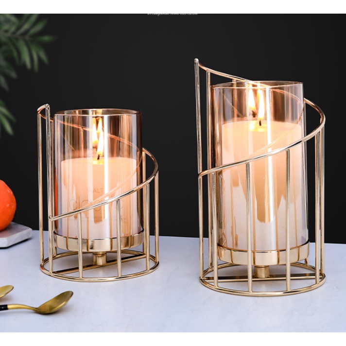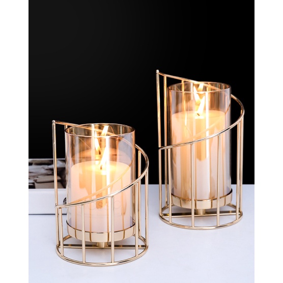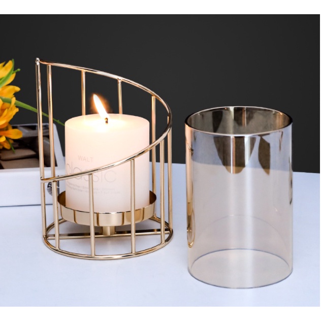+ Chất liệu : kim loại sơn vàng , thủy tinh ( không bao gồm đèn cầy và hoa )