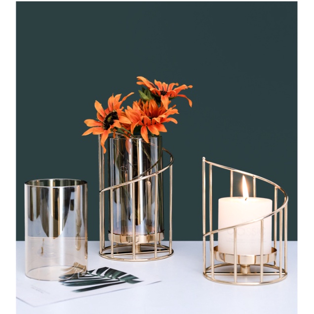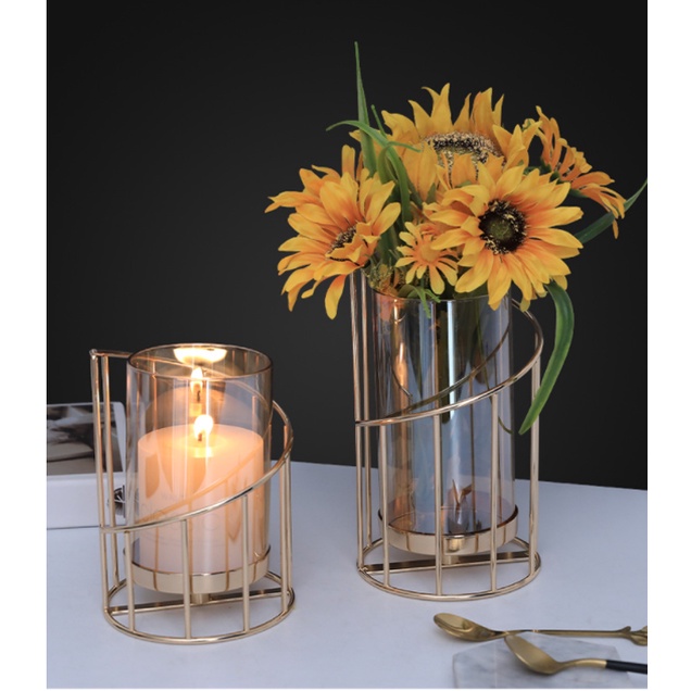 _ Chân nến trang trí sang trọng kiêm luôn lọ hoa trang trí bằng kim loại sơn vàng kết hợp chất liệu thủy tinh hết sức sang trọng phù hợp vừa trang trí phòng khách và những buổi tiệc trang trọng+ Bên cạnh đó các bạn có thể sáng tạo dùng làm đế chân nến hoặc trưng lông vũ bên trong đế có thể bỏ những viên ngọc trai >> trưng bày trang trí trên bàn cho những buổi tiệc tạo điểm nhấn nổi bật và #sang #trọng