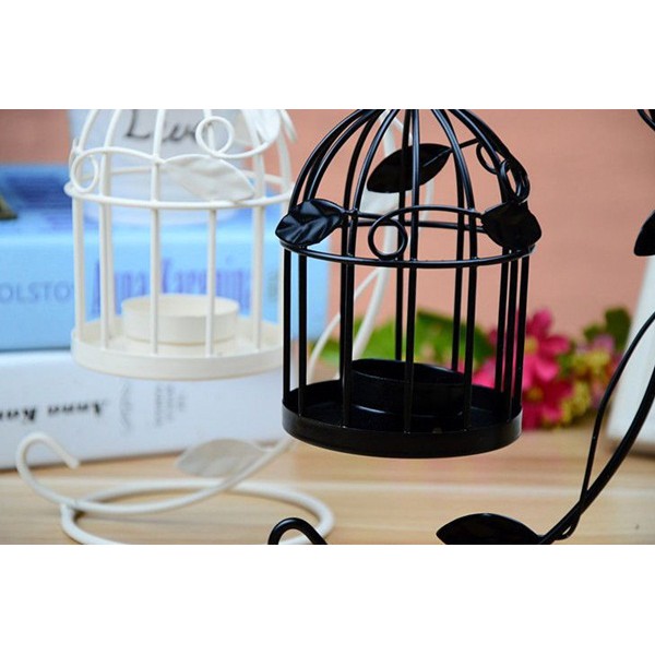 Chân nến lồng chim treo cành cây kiểu dáng trang nhã dùng bày trang trí kệ gía sách, bàn tiệc, dùng thắp nến trà.Chất liệu: sắt sơn.