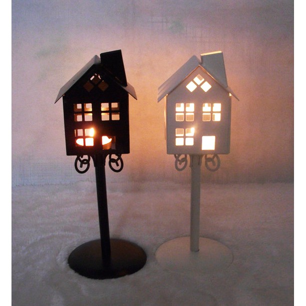 Chân nến kiểu dáng nhà 1 cột dùng thắp nến trà, bày trang trí phòng, kệ giá sách, kệ trang trí, bàn tiệc.Chất liệu: sắt sơn.