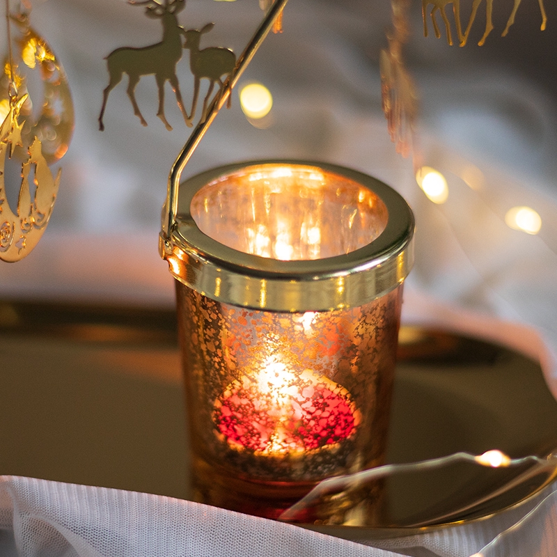 Chân Nến Thủy Tinh Đế Nến Xoay Chong Chóng Kim Loại Decor Trang Trí Giáng Sinh CN001