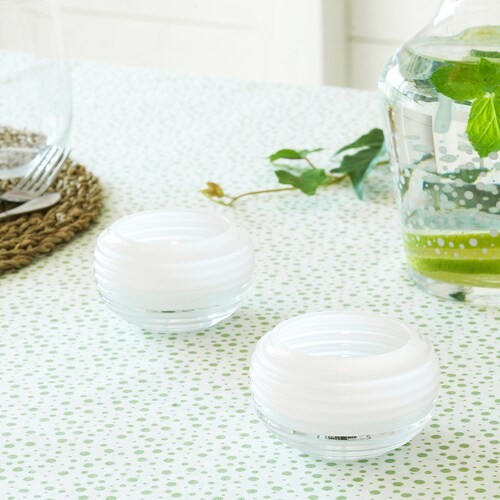 Chân nến thủy tinh INBJUDEN IKEAKích thước: cao 5cm, đường kính 8cm