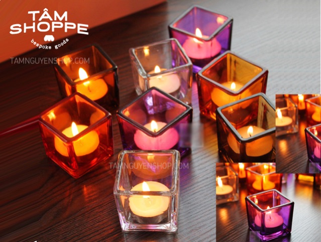 Nhà cửa & Đời sống > Trang trí nhà cửa > Nến & đồ đựng nến || Chân nến thuỷ tinh vuông màuCòn hàng