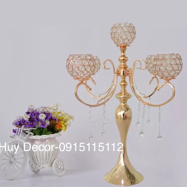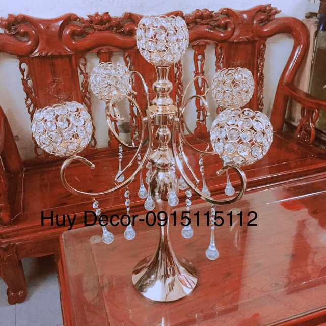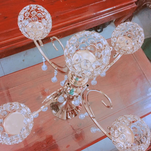 ✨chân nến cao khoảng 65cm , gồm 5 tay đính 12 dây hạt phale . Trên mỗi tay có cốc nến được đính các chi tiết trang trí cầu kỳ , bên trong cốc có khay để đựng nến điện tử hoặc nến trang trí .