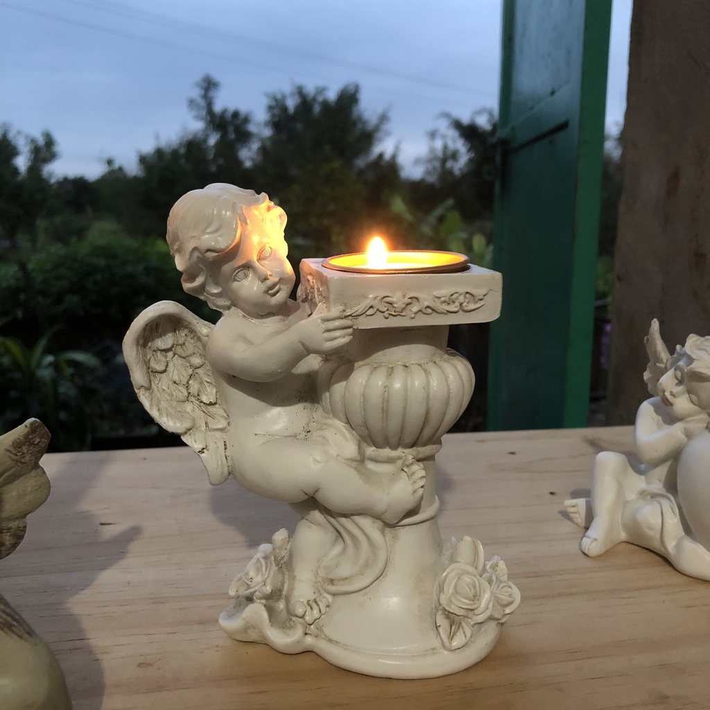 Nhà cửa & Đời sống > Trang trí nhà cửa > Nến & đồ đựng nến || Chân nến trang trí nội thất cổ điển hình tượng thiên thần Phục Hưng cao cấpCòn hàng