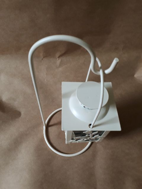 Chân nến treo hình hộp có họa tiết hoa dùng thắp nến trà hoặc bày trang trí.Chất liệu: sắt sơn trắng ngà.