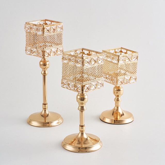 Nhà cửa & Đời sống > Trang trí nhà cửa > Nến & đồ đựng nến || Chân nến vuông đính đá phale trang tríCòn hàng