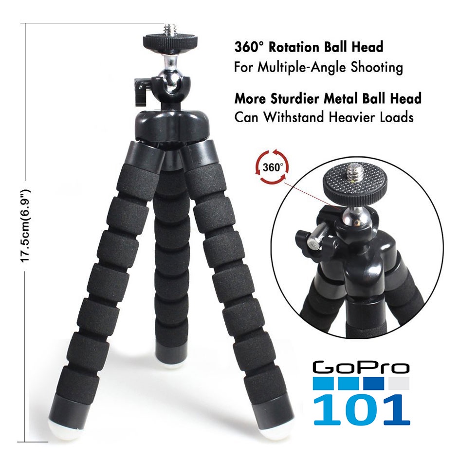 Cameras & Flycam > Phụ kiện máy ảnh > Chân máy ảnh || Chân nhện tripod bọc xốp 360 độ cho gopro 5 6 7 8, Sjcam, Yi Action, Osmo Action, điện thoại - Gopro101 - inoxnamkimSo sánh giá ×