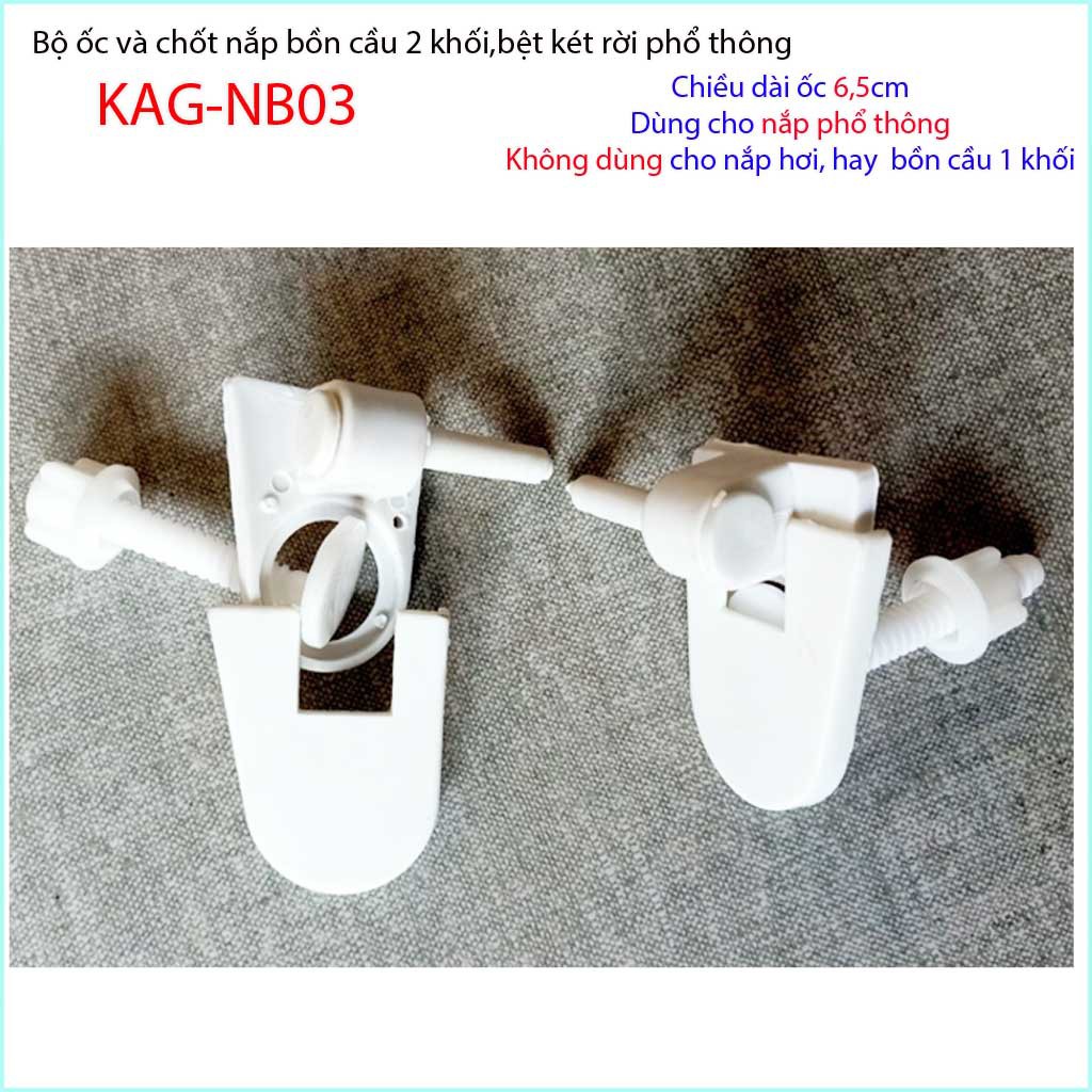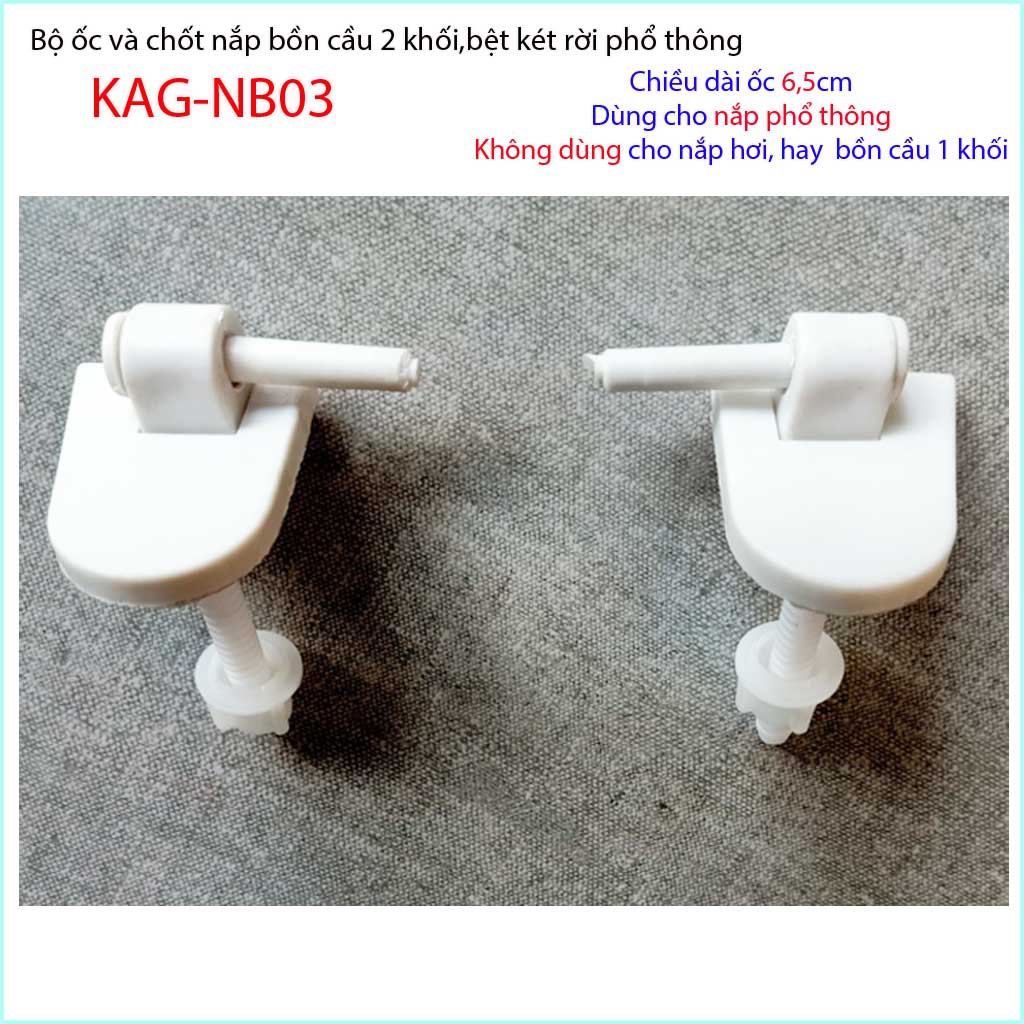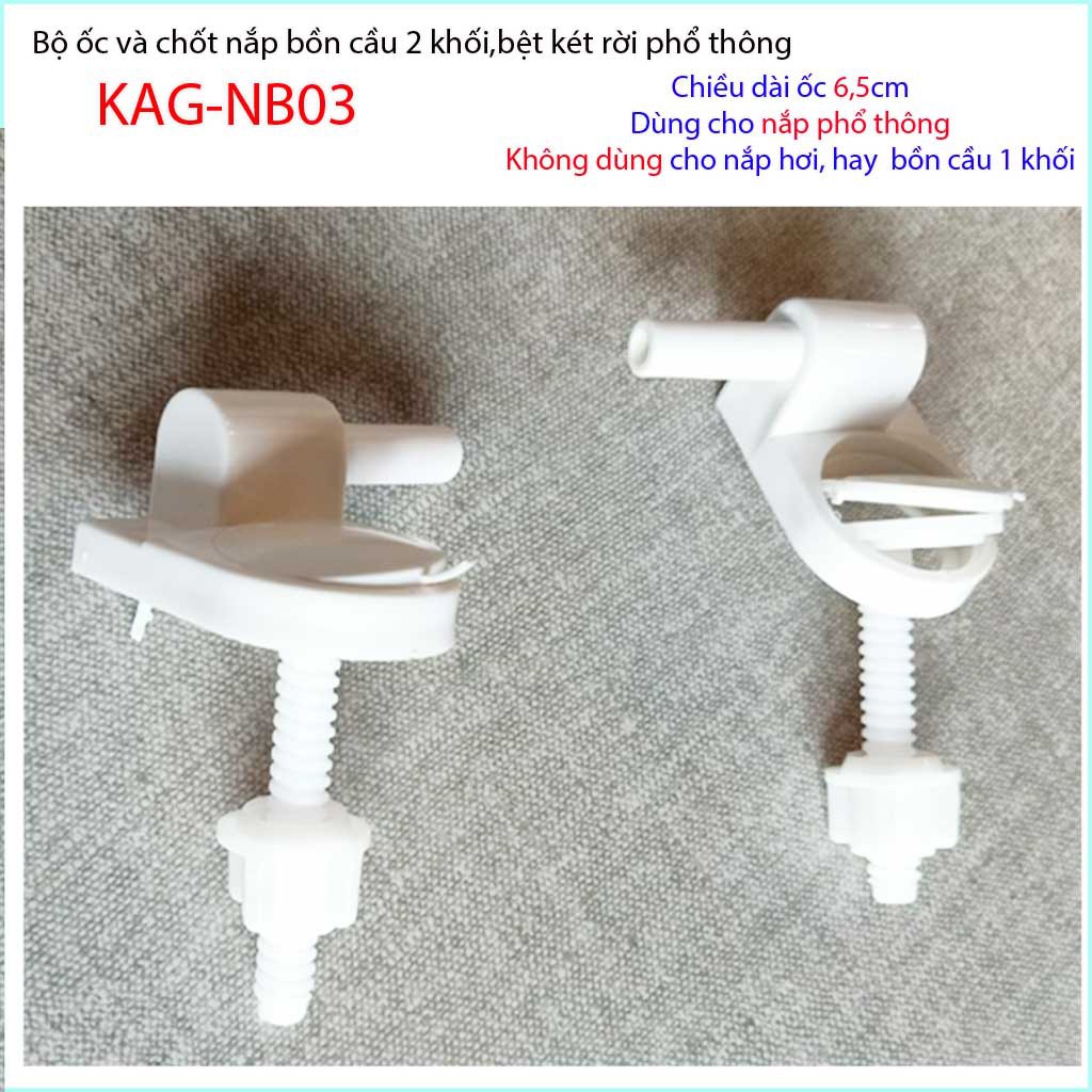 Chân ốc chốt nhựa nắp bồn cầu, Ốc và chốt nắp bồn cầu phổ thông, trọn bộ ốc chốt nắp bồn cầu Classic KAG-NB03