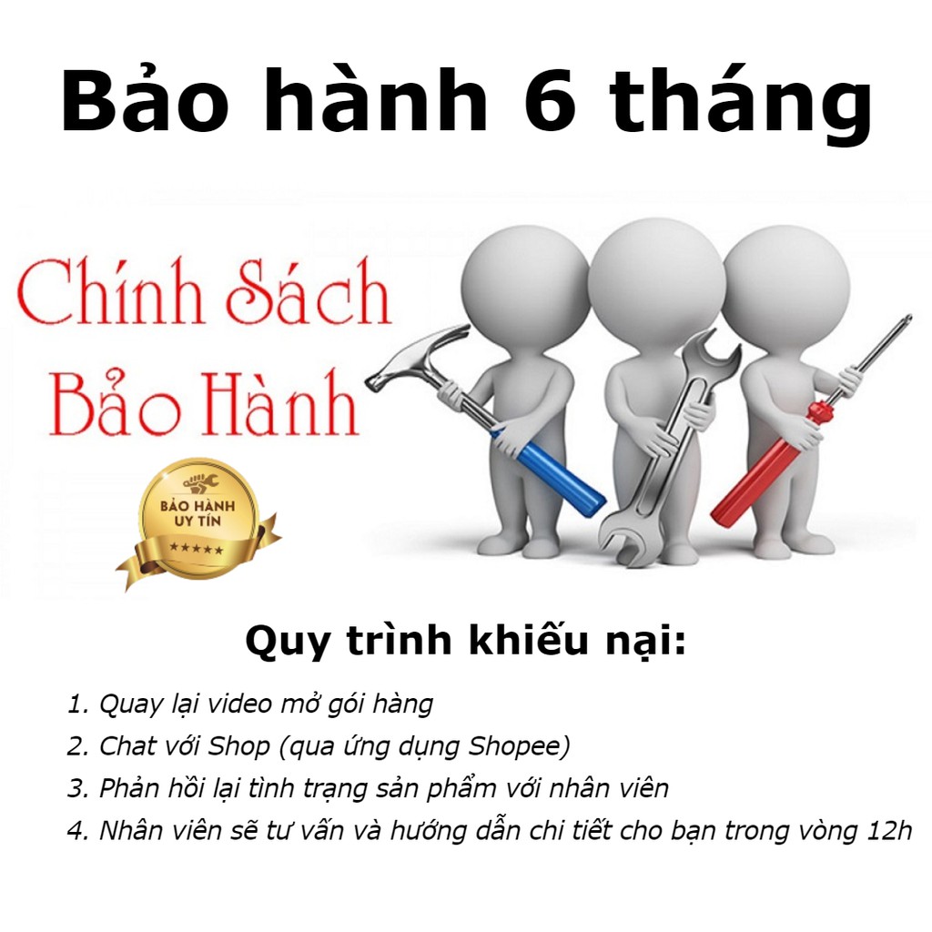 - Thời gian bảo hành 6 tháng đối với thân máy, 1 tháng đối với pin, sạc