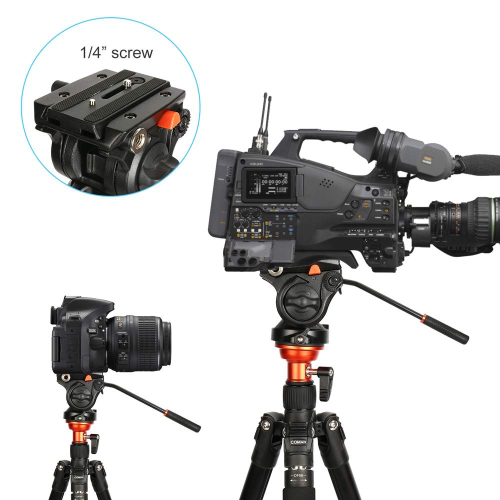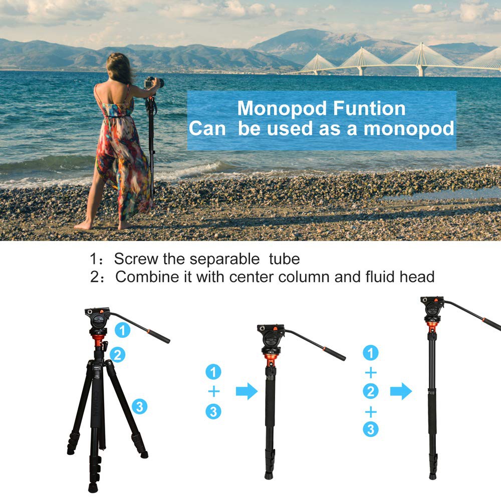 - Đầu bi hydrulic chuyên nghiệp: 360øpanorama và trọng lượng nhẹ với tải trọng tối đa 6kg, 1/4 "và bệ gắn 3/8" dự phòng tương thích với hầu hết các máy ảnh và camcoders của thương hiệu.- Monopod funtion: thiết kế ống chân tách rời cho phép kết hợp ống chân rời với trục giữa thành một chân máy đơn.