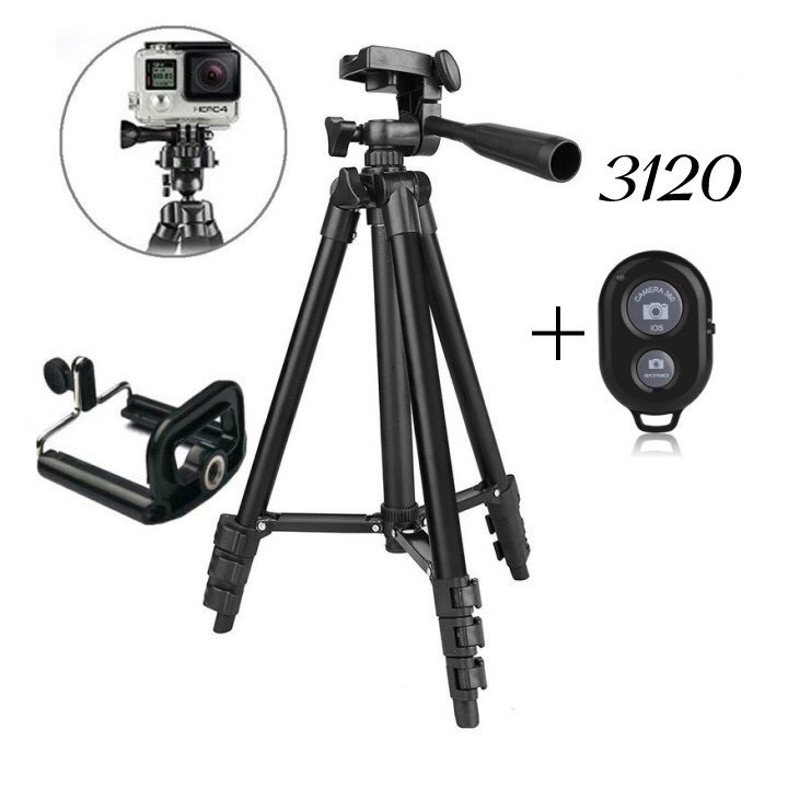 Giới thiệu Chân quay điện thoại tripod 3120 A,Giá đỡ điện thoại khung đen chắc chắn tặng kẹp điện thoại