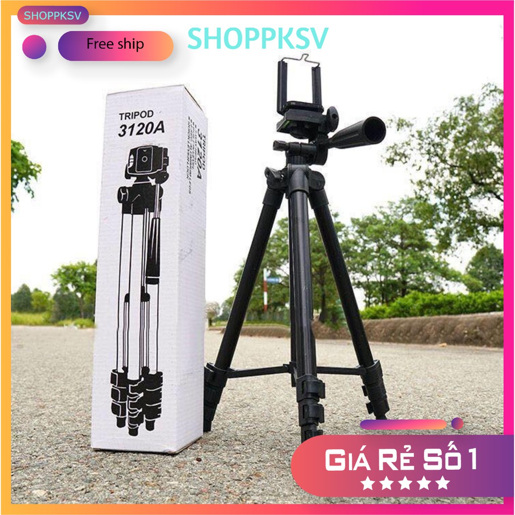 Chân quay điện thoại tripod 3120 A,Giá đỡ điện thoại khung đen chắc chắn tặng kẹp điện thoại