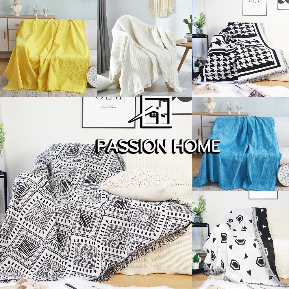 Chăn Thảm Phủ Ghế Sofa Đan Len Tua Rua Màu Trơn Phong Cách Thổ Cẩm
