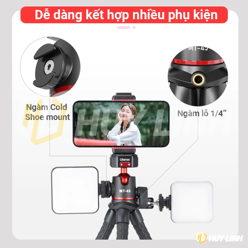 Giới thiệu Chân Tripod Octopus Ulanzi MT-45 Claw Flexible Tripod Cho Điện Thoại/Máy ảnh Mirroless, DSLR - Tích hợp Cold Shoe