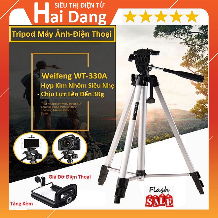 Chân Tripod Weifeng WT-330A, Giá Đỡ Cho Máy Ảnh DSLR- Tặng Kèm Giá Đỡ Điện Thoại