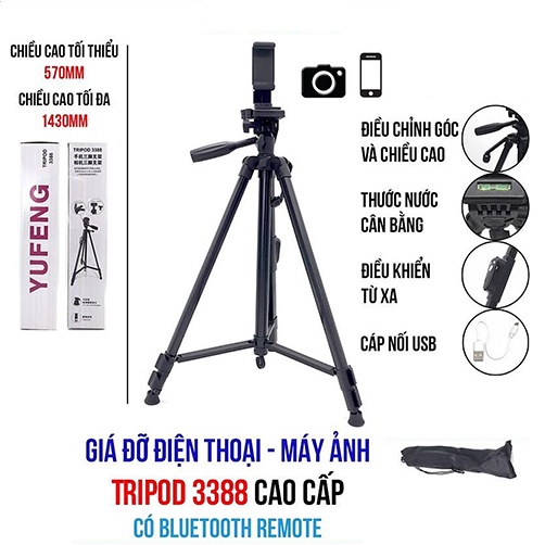 Chân tripod YunFeng 3388 kèm remote bluetooth - Giá đỡ 3 chân chuyên dụng cho máy ảnh, điện thoại, DSRL