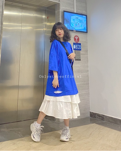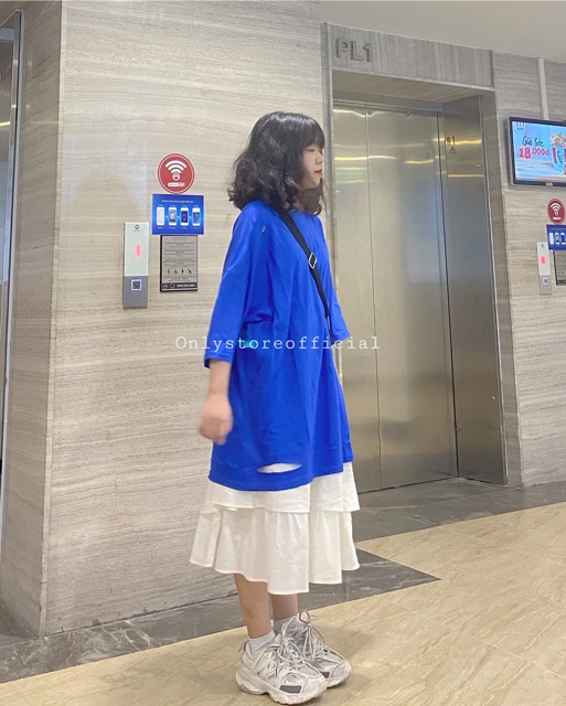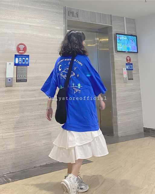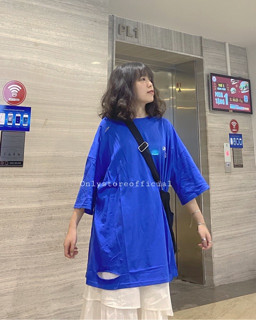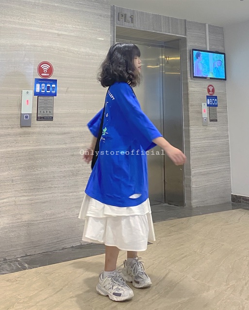 -Áo xanh “love club” oversize dài 78 rộng 128 (vải cotton, thấp mặc thành dạng giấu quần