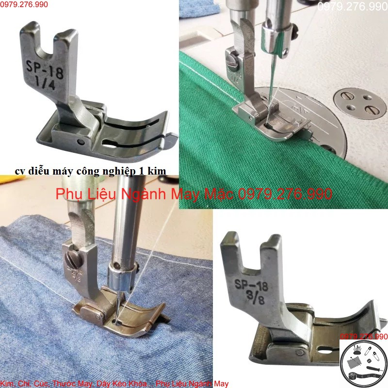 Chân vịt được sử dụng cho các dòng máy may công nghiệp 1 kim (máy cơ, máy điện tử hoặc máy bán công nghiệp đều có thể dùng được).Chân vịt diễu SP18 thường được dùng để diễu đường thẳng canh lề so với mép vải mà ko cần phải dùng cữ nam châm. Mỗi chân vịt có 1 size khác nhau để căn chỉnh đường thẳng phù hợp với yêu cầu của từng loại sản phẩm khác nhau