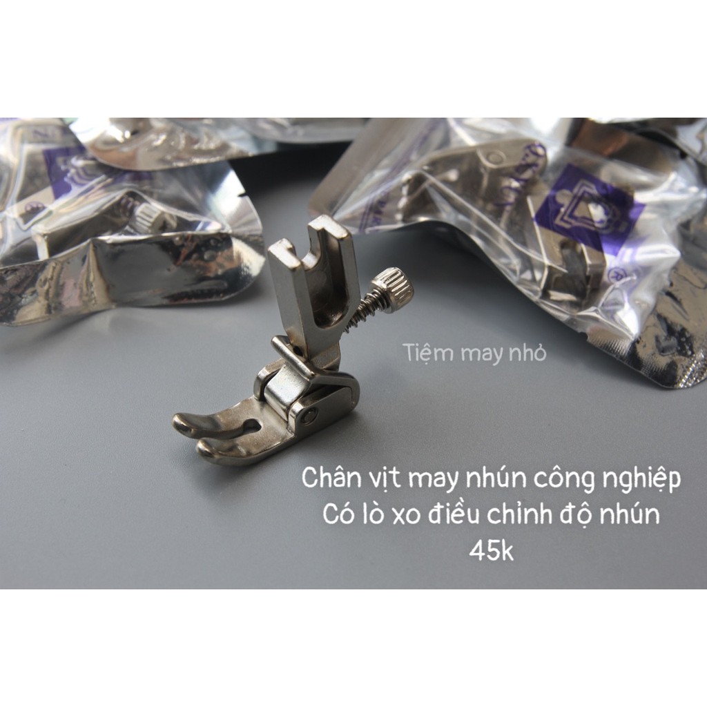 Chân vịt nhún có lò xo điều chỉnh độ nhún dành cho máy may công nghiệpDùng để may nhún bèo, có lò xo điều chỉnh độ nhún, có clip hướng dẫn sử dụng