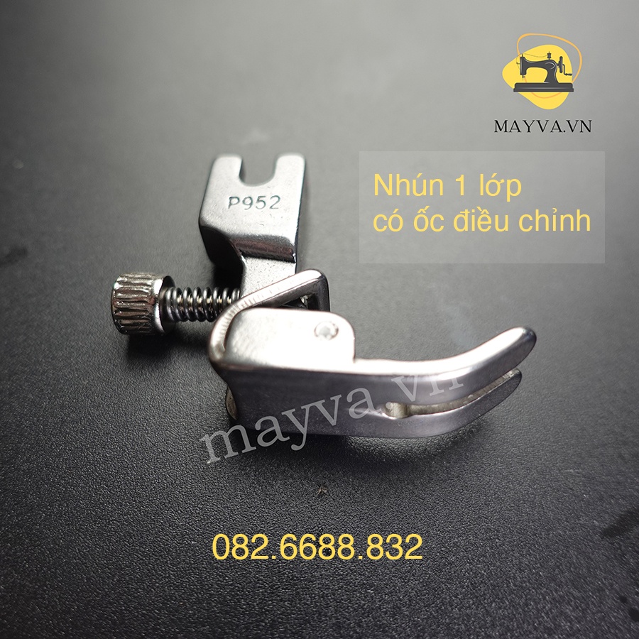 🔸 Nhún 1 lớp có ốc điều chỉnh: có thể điều chỉnh nhún nhiều hay ít tùy chỉnh bằng ốc vặn, cũng có thể chỉnh may đường thẳng không nhún như chân vịt thường