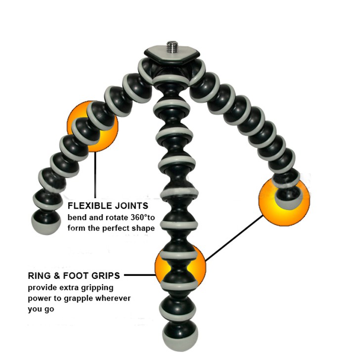 Chân xoắn bạch tuộc flexible tripod được nối với nhau bằng các khớp bi nên dễ dàng xoay, bẻ, gập góc ở nhiều mức độ khác nhau