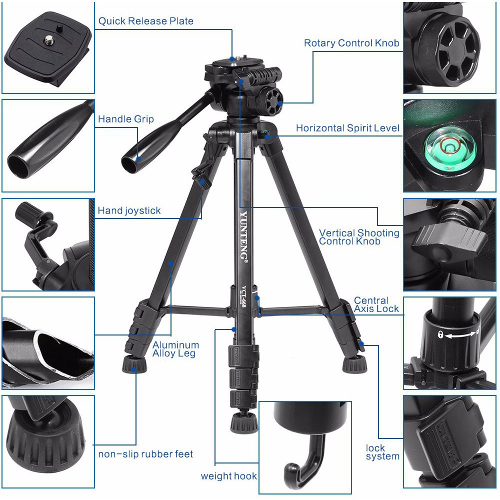 Giới thiệu Chân Yunteng 668 + Kẹp Điện thoại Hoặc Remote Máy ảnh Canon/ Nikon/ Sony