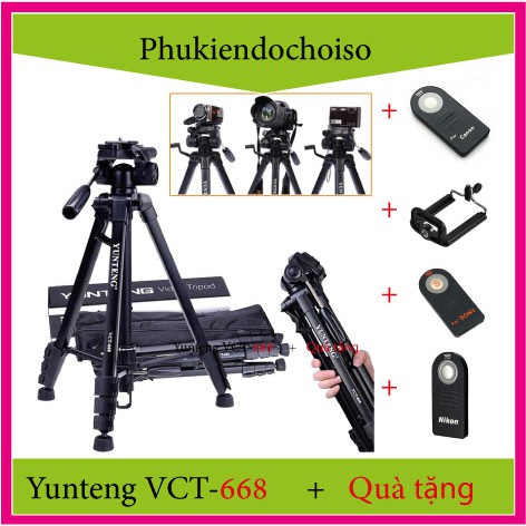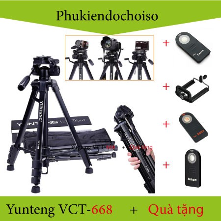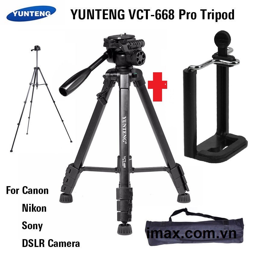 Chân Yunteng 668 + Kẹp Điện thoại Hoặc Remote Máy ảnh Canon/ Nikon/ Sony