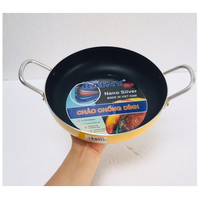 Nhà cửa & Đời sống > Dụng cụ nhà bếp > Chảo || Chảo 2 quai chống dính 22cm sơn màu vàng Rainy bền đẹpCòn hàng