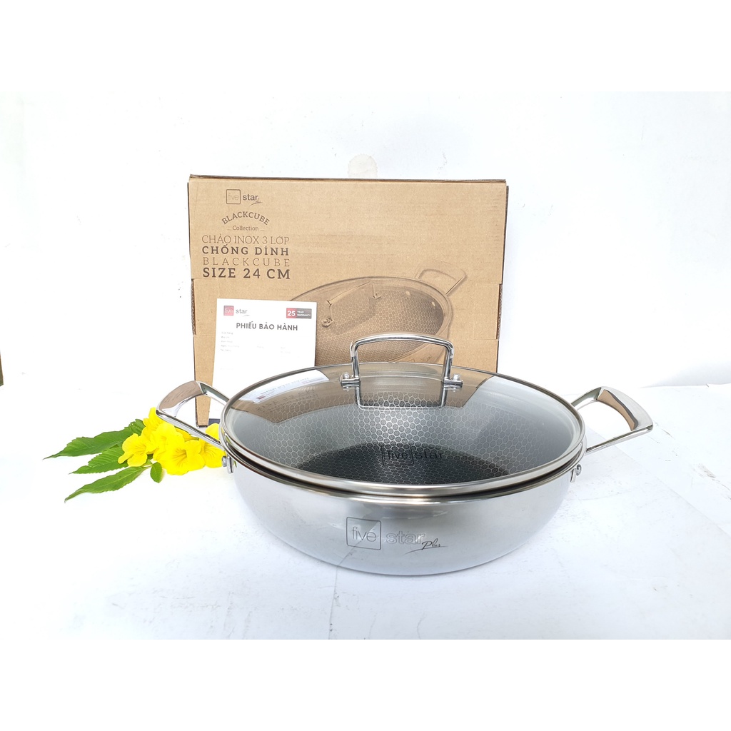 CHẢO 2 QUAI TỔ ONG FIVESTAR NẮP KÍNH24cm x cao 7cm