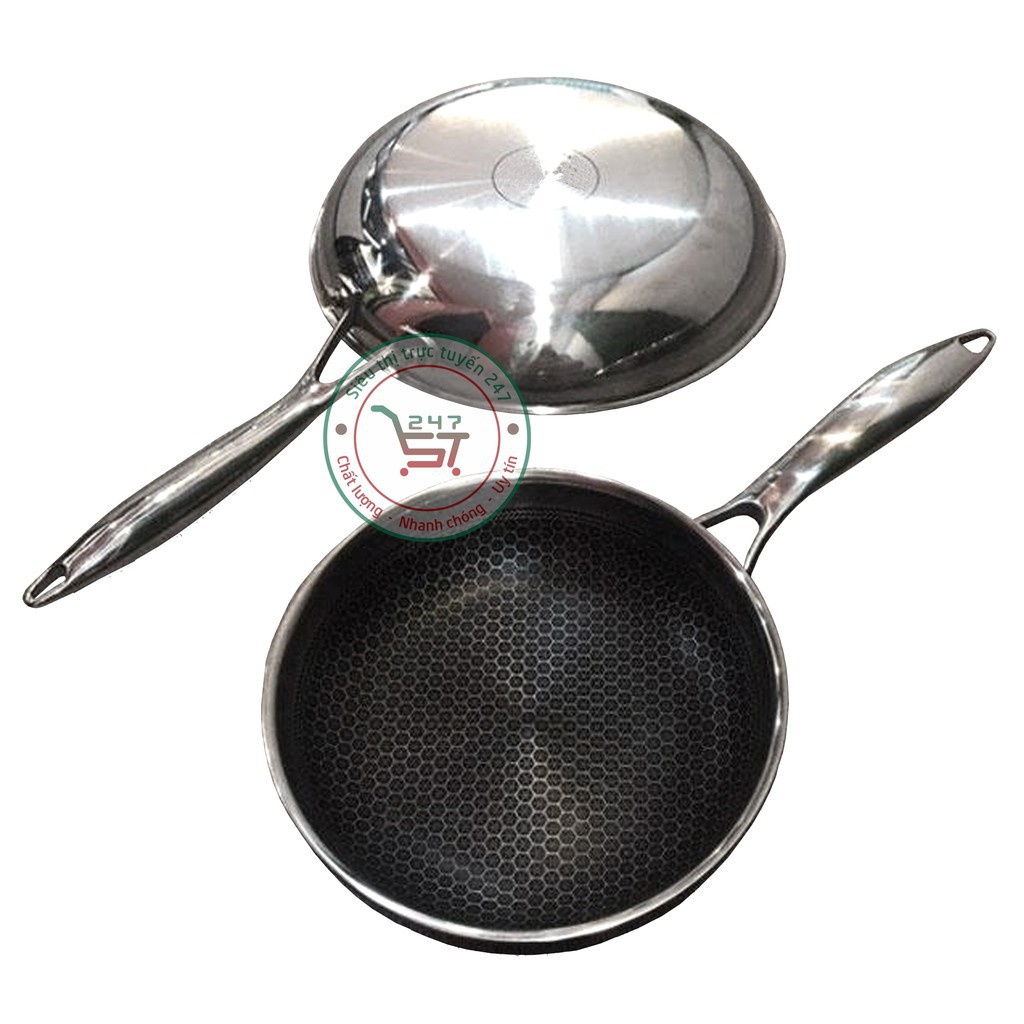 + Chảo inox chống dính vân tổ ong lòng sâu